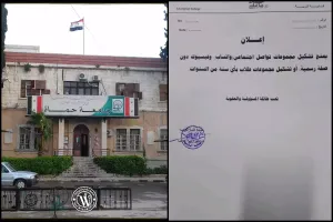 أصدرت كلية التربية في "جامعة حماة" التابعة للنظام، قراراً يقضي بحظر الطلاب من إنشاء وتشكيل أيّ مجموعات طلابية عبر وسائل التواصل الاجتماعي، كما توعدت المخالفين للقرار بالمعاقبة والمحاسبة.