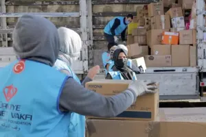 وأفاد وقف الديانة في بيان، الخميس، أن المواد الإغاثية المكونة من ألعاب وقرطاسية ومواد تعقيم وحفاضات أطفال، تم جمعها في إطار المشروع، ثم أُرسلت إلى سوريا.