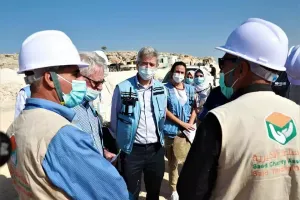 وشمل الوفد السيد "مارك كتس" نائب المنسق الإقليمي للشؤون الإنسانية، والسيد "كيفن كينيدي" مساعد الأمين العام للأمم المتحدة ومنسق الشؤون الإنسانية الاقليمي وعدد من الشخصيات الأخرى مواقع ومخيمات عدة شمال غرب سوريا.