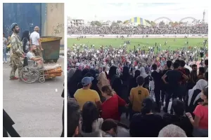 وسبق أن بثت صفحات موالية للنظام صوراً ومشاهد تظهر تجمع آلاف الأشخاص قالت إنهم من ذوي قتلى وجرحى ميليشيات النظام بداخل ملعب بمدينة حمص ليصار إلى إذلالهم بتقديم "عبوة مياه وبسكوتة"، بعد دعوة "مؤسسة العرين الإنسانية" لتكريمهم في ملعب حمص البلدي، حسب زعمها ما أثار غضب وسخط الموالين للنظام.