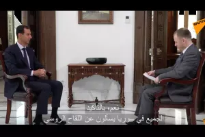 وسبق كثف الإرهابي "بشار الأسد"، ظهوره عبر وكالات الأنباء الروسية وبرزت تصريحاته الأخيرة فيما يتطابق مع روايته المنافية للوقائع في سياق تعرضه للمؤامرات الدولية التي تهدف إلى فرض الفتنة والفوضى حسب تعبيره.