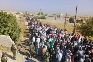 وتناقلت مواقع إعلام موالية للنظام، صوراً للمئات من المدنيين ممن تم نقلهم للمنطقة من المناطق الموالية، احتشدوا حول النقاط التركية في "مورك، الصرمان، تل الطوكان" ورفعت شعارات تطلب خروج تلك النقاط.