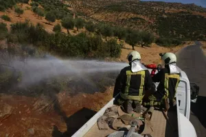 تعرضت أطراف بلدة عين عيسى لقصف مدفعي مكثف من قبل الجيش التركي والجيش الوطني، ما أدى لاشتعال النيران في مخيم عين عيسى "خالي من السكان".