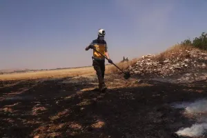 أصيب ثلاثة أطفال بجروح جراء انفجار قنبلة عنقودية من مخلفات قصف سابق لقوات الأسد أطراف بلدة النيرب بالريف الشرقي.