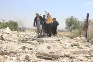 وكان استشهد أربعة مدنيين وجرح آخرون في وقت متأخر من يوم أمس، جراء قصف طيران النظام المروحي بالبراميل المتفجرة على مدينة مورك بريف حماة، كما تعرضت فرق الدفاع المدني للاستهداف بغارات مزدوجة خلال محاولتها الوصول لموقع الضحايا.