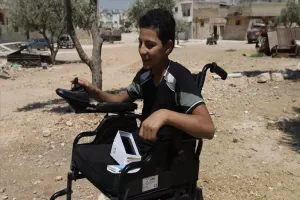 وخلال حديثه للأناضول، قدم "سليمان" شكره لهيئة الإغاثة التركية لتقديمها الكرسي المتحرك والهاتف له، مضيفا أنه أصبح بإمكانه التجول في الحي والذهاب إلى المدرسة لوحده.