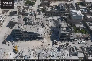 انهار مبنى مكون من 3 طوابق في مدينة أريحا بعد تعرضت لقصف سابق من طائرات الأسد الحربية، دون تسجيل أي إصابات بسبب إخلاء المبنى في وقت سابق.