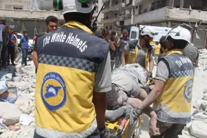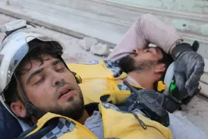 وبالمقابل، انتشرت صور عناصر الدفاع المدني السوري عبر مواقع التواصل، ولاقت تعاطفاً كبيراً لما فيها من معان إنسانية كبيرة، لعناصر "الخوذ البيضاء" أصحاب الإنسانية المواجهة لإجراء الأسد وروسيا بحق المدنيين في المناطق المحررة، ليقوموا بالبحث عن حياة بين ركام الموت اليومية قبل أن يأخذهم التعب ليأخذوا قسطاً من الراحة بين ركام المباني ومع رائحة الموت المنتشرة في كل مكان.