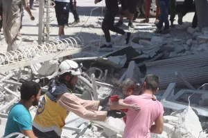 تداول نشطاء من إدلب عبر مواقع التواصل الاجتماعي يوم أمس السبت، صورة لأحد الأطباء في إحدى مشافي ريف إدلب، وهو بحالة إنهاك وحزن شديدة، بعد انتهائه من علاج مصابي القصف الجوي لطيران الأسد على مدينة أريحا، وبدت عليه آثار الدماء والتعب واضحة، كما نشرت صورة لعناصر من الدفاع المدني "الخوذ البيضاء" منهكة متعبة بعد انتهائها من انتشال شهداء المجزرة.