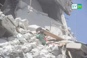 طفلة سورية صغيرة تجهد لإنقاذ أخيها الرضيع، وكلاهما عالقان بين ركام قصف طائرات النظام، فيما أبوهما يصرخ من أعلى الركام، عاجزاً عن فعل أي شيء، صدمت رواد مواقع التواصل الاجتماعي، وغدت تنتشر بشكل كبير عبر منصات التواصل.