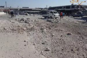 وقال نشطاء إن الطيران الحربي التابع للنظام، استهدف بعدة صواريخ سوق الهال قرب مدينة سراقب، والذي يعتبر مصدراً غذائياً مهماً لجل منطقة ريف إدلب، تسبب القصف باستشهاد رجل ودمار كبير في البنية التحتية الخاصة بالسوق.