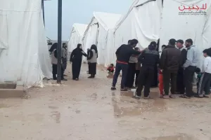 نظم المهجرون الفلسطينيون قسراً إلى الشمال السوري، اعتصاماً في مخيم دير بلوط احتجاجاً على تردي أوضاعهم المعيشية المزرية التي يعانون منها داخل المخيم الذي يفتقر لأدنى متطلبات الحياة الإنسانية، منه داخل المخيم.