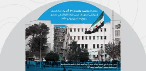 وثّقت "الشبكة السورية لحقوق الإنسان" مقتل ثلاثة مدنيين وإصابة 34 آخرين في غارات جوية نفذتها قوات الاحتلال الإسرائيلي بتاريخ 16 تموز/يوليو 2025، استهدفت مبنى قيادة الأركان في ساحة الأمويين وسط العاصمة دمشق، في واحد من أعنف الهجمات التي تطال منطقة مدنية مأهولة.