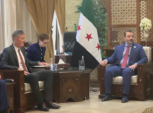 استقبل وزير الخارجية والمغتربين السوري، الدكتور أسعد حسن الشيباني، يوم أمس الثلاثاء 8 تموز/يوليو 2025، وفداً أوروبياً رفيعاً برئاسة ميخائيل أوهنماخت، المبعوث الأوروبي المكلف بأعمال الاتحاد الأوروبي في سوريا، وذلك في مقر الوزارة بدمشق.