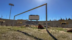 اليوم، وبعد سقوط النظام البائد في 8 ديسمبر/كانون الأول 2024، بدا الملعب وكأنه ينهض ليحكي قصته من جديد ومدرجاته التي احتضنت صيحات الفرح أصبحت مهدّمة، وأرضيته التي كانت خضراء تحولت إلى ساحة قاحلة مليئة بالحفر ومخلفات الحرب أما المستودعات فباتت تحمل بقايا ذخائر بدلاً من المعدات الرياضية.