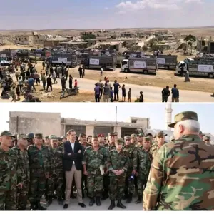 وقد جمع ناشطون صورتين في مشهد واحد: صورة الأسد المخلوع أثناء زيارته، وصورة قوافل العودة وهي تدخل الهبيط، في إشارة رمزية بليغة إلى أن الظلم لا يدوم، وأن الحق لا يُنسى، بل يُستعاد وإن طال الزمن.