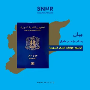 دعت "الشَّبكة السورية لحقوق الإنسان"، الحكومة السورية الجديدة إلى خفض تكاليف إصدار جوازات السفر السورية إلى مستويات معقولة تتناسب مع الواقع الاقتصادي المحلي والمعايير الدولية، وينبغي ألا تتجاوز رسوم الجواز العادي 50 دولاراً أمريكياً، مع تحديد سقف قدره 100 دولار للخدمات العاجلة.
