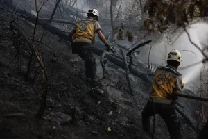 تواصل فرق الدفاع المدني السوري وكوادر وزارة الدفاع والداخلية والطوارئ، عمليات إخماد الحرائق المشتعلة في منطقة الربيعة في جبل التركمان بريف اللاذقية، لليوم السادس على التوالي، في ظل وصول مؤازرات فرق الإطفاء، وإمدادات المياه والكوادر البشرية والآليات، لمواجهة ألسنة اللهب، والسيطرة على بؤر النيران التي لا تزال مشتعلة في المنطقة.