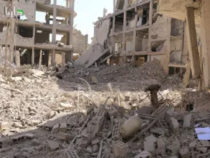 وتسبب القصب بتحويل أبنية مدينة داريا إلى ركام وزاد من مساحة الدمار والخراب فيها.