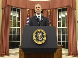 أكد الرئيس الأمريكي، باراك أوباما، في خطاب نادر للأمة، عزم بلاده القضاء على تنظيم الدولة "من غير أن ننجر إلى حرب برية" في العراق أو سوريا، مؤكداً الاستراتيجية التي تتبعها إدارته منذ سنوات في مواجهة التنظيم والمتمثلة بـ "لا حرب برية".