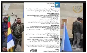 و أعلن "المجلس العسكري في السويداء"، في بيان رسم صباح اليوم الجمعة، تبنيّه الكامل لبيان الشيخ حكمت الهجري، الرئيس الروحي لطائفة الموحدين المسلمين الدروز، مطالباً بفرض منطقة آمنة في السويداء والمناطق المحيطة بها، تحت إشراف قوات دولية محايدة، معلناً رفضه دخول قوى الأمن العام، وذلك عقب ما أسماها "الانتهاكات" التي تعرض لها الدروز في منطقة صحنايا بريف دمشق.
