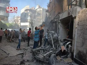 في خضم المعارك الدائرة في سهل الغاب ونظراً لموقع جبل الزاوية المطل على السهل من جهة الشرق وصموده المتواصل في وجه الطيران الحربي منذ سنوات حتى اليوم ، يواصل طيران الأسد الإجرامي بحملته الصاروخية التي تستهدف البشر والحجر في معظم مناطق إدلب عامة وجبل الزاوية خاصة كونه قريب من مناطق الإشتباك في سهل الغاب ويعتبره النظام بؤرة لتواجد المسلحين في المنطقة ، إذ أن جبل الزاوية كان وسيبقى مسمار يدق في نعش نظام الأسد البائد ، حيث تستمر الحملة الهمجية على قرى وبلدات جبل الزاوية منذ اكثر من شهر وفق برنامج قصف يومي ممنهج ليل نهار من طائرات حربية ومروحية تستهدف المباني السكنية والأسواق الشعبية بالدرجة الأولى بعد عجزها عن وقف تقدم قوات جيش الفتح في محاولة منها لخلق حالة من الفوضى والتململ لدى الشعب الثائر وزعزعة الحاضنة الشعبية لفصائل الفتح في المنطقة .