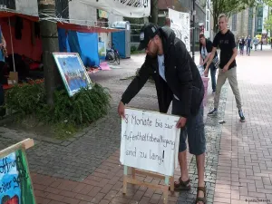 بيد أنه ولحسن حظ السوريين، فإن – وباستثناء عدد قليل من الغوغاء النازية– كرم الألمان كان كبيرا، حيث قدموا المساعدة لللاجئين من خلال مدهم بالأغطية والبساطات والكراسي وغيرها. وقد نسق الناس المساعدات عبر مواقع التواصل الاجتماعي، حيث كان البعض يرسل بتغريدات على تويتر تتضمن ما يحتاجه اللاجئون من مساعدات على غرار أغطية أو كؤوس أو سخان للماء. وقد لقي السوريون المحتجون الكثير من الدعم من قبل المواطنين الذين يؤيدون أيضا التسريع في النظر في طلباتهم للجوء حتى يتمكنوا من استقدام أهاليهم إلى ألمانيا.