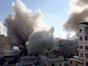 كما وقصفت طائرات الأسد بلدتي النشابية ودير العصافير مما أدى لسقوط عدة جرحى ، بينما ألقت مروحيات الأسد برميل متفجر على محيط شارع نستله بمخيم خان الشيح بغوطة دمشق الغربية مما أدى لإرتقاء شهيدين وسقوط جرحى بالإضافة لحدوث أضرار مادية في المنطقة ، و قصف الطيران المروحي أحياء مدينة داريا بثمانية براميل متفجرة .