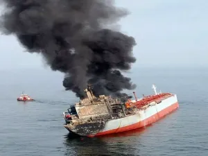 وقال مسؤول أمني "يجري إخلاء السفينة" مضيفاً أن 130 شخص نقلوا من قارب إنقاذ الى سفينة حاويات كانت قريبة حين اندلع الحريق.