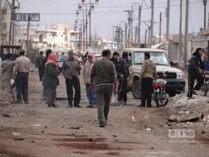 بعد أن إرتقت شهيدة وإبنتها يوم الأحد الفائت في مدينة بصرالحرير بريف درعا الشرقي جراء إلقاء الطيران المروحي بالبراميل المتفجرة على المدينة ، عاود الطيران المروحي هذا اليوم وألقى ببراميله المتفجرة ليستبب بأضرار مادية في المنطقة المستهدفة ، وسبق ذلك شن طيران "الميغ" غاراته بالصواريخ على الأحياء السكنية في المدينة مما أدى لإرتقاء ثلاثة شهداء وسقوط عدد من الجرحى.