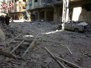 و إستفاقت مدينة دوما اليوم على أصوات تحليق الطيران الحربي الذي شن غارتين عنيفتين على وسط المدينة ، مما أدى لإرتقاء 5 شهداء وسقوط ما يقارب الـ 30 جريح ، الأمر الذي جعل المشافي الميدانية تغص بالجرحى في ظل النقص الذي تعانيه في ظل الحصار الذي تشهده الغوطة الشرقية ، وتبع ذلك إستهداف قوات الأسد بقذائف الهاون للمناطق التي شن فيها الطيران غاراته ليؤدي لسقوط أعداد أخرى من الجرحى .