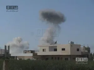 ألقى طيران الأسد المروحي ثلاثة براميل متفجرة على قرية مسحرة .
