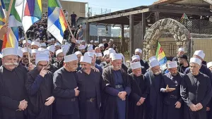 واستقبل الآلاف من أبناء الطائفة الدرزية في قرية البقيعة شمالي إسرائيل، السبت، وفدًا يضم 100 شيخ درزي من سوريا، في إطار زيارة استمرت يومين.