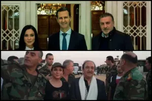 كما تصور مع الكثير من رموز النظام بما فيهم رأس النظام الهارب وزوجته التي لا تزال صورة غلاف لأحد حساباته الشخصية في فيسبوك، إضافة إلى عدد كبير من الممثلين منهم "عارف الطويل" خلال إنتاج مسلسل يشوه صورة الثورة السورية.
