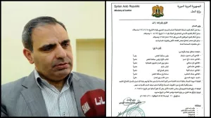 أظهرت وثيقة رسمية صادرة عن وزارة العدل في الحكومة الانتقالية السورية، وتحمل توقيع الوزير القاضي "شادي محمد الويسي"، تعيين القاضي "نزار صديق صدقني"، بمنصب "معاون وزير العدل للشؤون القضائية"، ما أثار ردود واستياء واسع النطاق بسبب سجل القاضي المخزي حيث شارك في طمس جرائم نظام الأسد البائد.