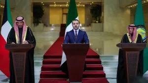 وأشاد وزير خارجية سوريا في مؤتمر صحافي مشترك مع وزير الخارجية الكويتي عبدالله علي اليحيا، وأمين عام مجلس التعاون الخليجي جاسم البديوي، اليوم الاثنين، بدعم الدول العربية للشعب السوري، وقال الشيباني إن الإدارة الجديدة تريد إعادة سوريا إلى محيطها العربي.