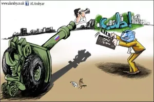 ما الذي يبقى بين أيادي الأسد؟ الفتك بالسوريين وحده المجال المتوفّر لدى الأسد، بعدما تجاوزته الأمم في ممارسة ما كان يمارسه هو على المسرح اللبناني: الصراع بين هذه الأمم على سورية، بداخلها، بساحتها، بالنيران المجرّبة وغير المجرّبة، باللحم الحيّ لأبنائها. فيكون نوعٌ غريب من تقسيم العمل بين تلك الأمم والأسد: هي تلعب، بشروط بعضها بعضا، بموازين قواهم، بنوعية أسلحتهم؛ فتقتل من السوريين ما تيّسر. فيما الأسد خارج اللعبة تماماَ. لا دور له غير الواجهة الرسمية القانونية، وقد يُستغنى عنه أحيانا. حتى هذا الدور الزهيد، قد يغلو عليه يوماً.. ولكنه، في المقابل، مطلق الحرية في قتل شعبه والتنكيل به. لم يبق بين أيادي الأسد غير قتل السوريين. لم يعد له ملعب آخر يلعب فيه. اللاعبون، كباراً أو متوسطين، يقرّرون ويقتلون، فيما هو يقتل وحسب.
