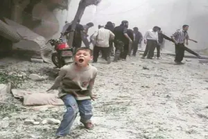 “الطيران الروسي وطيران الأسد يستهدفان الغوطة الشرقية بعدة صواريخ موجهة، وارتقاء عشرة شهداء وجرح ثلاثين، بينهم عشرة أطفال وثمانية نساء”. انتهى الخبر، ولكن هناك أشياء لم تُذكر، وأشياء لمّا تنتهِ بعد؛ ففي مكان الاستهداف هناك عوائل عانت -وما تزال- الجوع، منذ أشهر عديدة، وهناك أطفال يخجلون من التذمر أو الشكوى لجوع أصابهم، فآبائهم وأمهاتهم -إن وجدوا- عاجزون عن تأمين بضع لقيمات لهم. أليس لهذا السبب خرج رجل من دوما إلى الشارع، بعد أن اكتظت سماؤها بالطائرات الحربية والمروحيات المحملة بالبراميل المتفجرة؟ بلى، لقد خرج إلى الشارع وصاح وبكى مخاطبًا الطيارين: “اقصفوني! لن أتحرك، سأبقى في مكاني كي تكون إصابتكم محققة”. هل قرأتم هذا في الخبر!