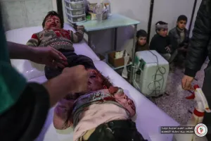 تواصل آلة القتل الروسية والأسدية استهداف المدنيين العزل في منازلهم بمدن وبلدات الغوطة الشرقية بعشرات الغارات الجوية من الطائرات الحربية والمروحية ومئات القذائف والصواريخ بينها صواريخ الفيل المدمرة، فقد وقعت مجزرة مروعة جدا في مدينة كفربطنا راح ضحيتها 22 شهيدا بينهم أطفال والعديد من الجرحى بينهم حالات خطيرة، كما وسجل ناشطون سقوط 9 شهداء في بلدة حزة "8 منهم من عائلة واحدة"، و6 شهداء في مدينة حمورية، و4 شهداء في مدينة سقبا وثلاثة شهداء في مدينة زملكا وشهيدين في كل من بلدات عين ترما والشيفونية وجسرين، وشهيد في كلا من عربين ودوما وحرستا ومسرابا وبيت سوى ومديرا، كما وسقط عشرات الجرحى بين المدنيين وحدث دمار كبير في بلدات أوتايا والأشعري وحزرما وحوش الصالحية وبيت نايم والنشابية وتلتها، فيما استهدفت قوات الأسد مدينة حرستا بصواريخ "أرض – أرض" محملة بمادة النابالم الحارقة.