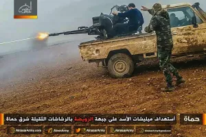رد الثوار على قصف قوات الأسد باستهداف معاقل قوات الأسد والشبيحة في حواجز الزلاقيات والشليوط وزلين والمعسكر الروسي جنوب مدينة حلفايا بالريف الشمالي، ومدينة سلحب وقريتي شطحة والصفصافية والمحطة الحرارية بالريف الغربي بقذائف المدفعية محققين إصابات مباشرة.
