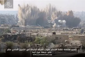 يوم أمس "تابع قسم إدلب، كما استهدفت هيئة تحرير الشام كتيبة هندسة عسكرية تابعة لقوات الأسد كانت تزرع الألغام على أطراف قرية قبيبات بريف حماة الشرقي بقذائف الهاون وحققت إصابات مباشرة.