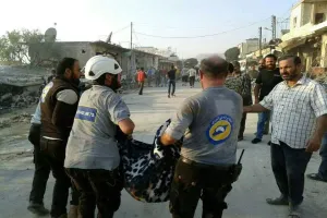سقط عشرات الشهداء والجرحى من المدنيين جراء قصف جوي من الطيران الروسي استهدف المعبر المائي في قرية حوايج ذياب بالريف الغربي، في حين أغار الطيران المروحي على ضفاف نهر الفرات ببلدة الخريطة بالريف الغربي، ما أدى لسقوط عشرات الشهداء والجرحى.