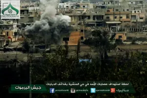 اشتباكات عنيفة بين عناصر تنظيم الدولة وقوات الأسد دارت على جبهتي حيي الحويقة والرشدية بمدينة ديرالزور وسط غارات جوية عنيف من طيران الأسد الحربي على الحيين وعلى حي كنامات.