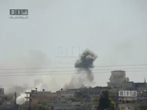 ألقى طيران الأسد المروحي برميلين متفجرين على قرى الريف الاوسط وبرميل على اطراف قرية مسحرة.