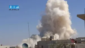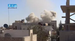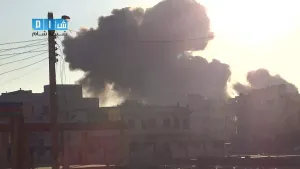 شام ريف ادلب سراقب تصاعد الدخان جراء غارة للطيران المروحي بالبراميل المتفجرة 4 10 2014 جـ1