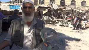 شام ريف ادلب سراقب كلمة لرجل مسن يتحدث القصف في أول ايام العيد 4 10 2014