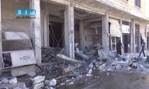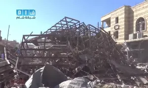 شام ريف ادلب سراقب اثار الدمار جراء غارة الطيران المروحي بالبراميل المتفجرة 4 10 2014 جـ2