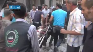 شام ريف دمشق دوما اسعاف الضحايا جراء غارة الطيران الحربي 3 10 2014 تحذير الفيديو قاسي جداً