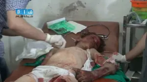 شام ريف دمشق دوما اسعاف طفل مصاب 3 10 2014 تحذير الفيديو قاسي جداً