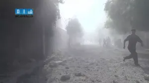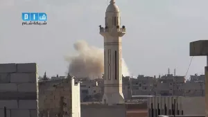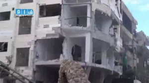 شام ريف دمشق دوما اثار الدمار جراء غارة الطيران الحربي الاولى 3 10 2014